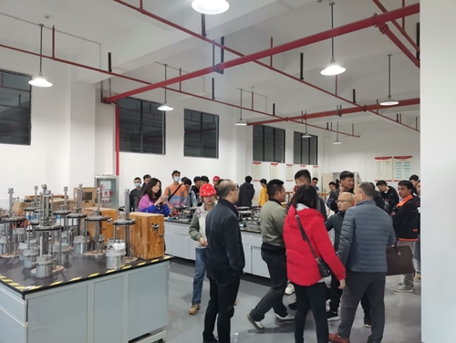 师生们先后参观了土木综合训练中心以及力学实验中心。李程老师对城市地下管廊、道路、隧道、桥梁、现浇工法楼、装配式工法楼的各类施工工艺进行了详细的介绍。